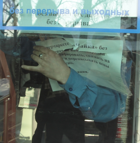Текст: Александр ТОНКОПРЯДЧЕНКО Действие первое. Происходит в торговом зале магазина «Чайка». На стене висит ружье… то бишь, объявление следующего содержания, плод, так сказать, административного восторга: «В супермаркете «Чайка» без разрешения администрации фотографировать, снимать на камеру и переписывать цены запрещено». Действующие лица и исполнители: Клиенты супермаркета «Чайка»: роли исполняют Павел Хижняк, Александр Тонкопрядченко и Нурлан Садыков. Продавщицы супермаркета «Чайка» – группа девушек с санитарными книжками. Секьюрити супермаркета «Чайка» – двое охранников оного заведения.
